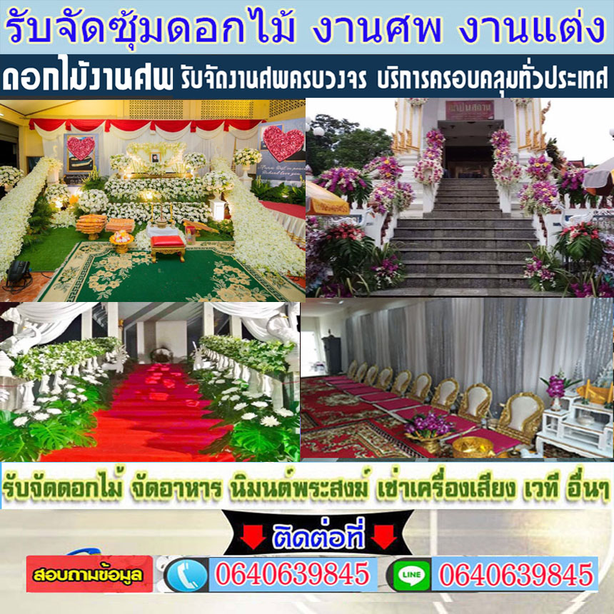 จัดดอกไม้หน้าเมรุ งานฌาปนกิจ งานสวดอภิธรรม จัดดอกไม้หน้ารูป จัดดอกไม้หน้าหีบ